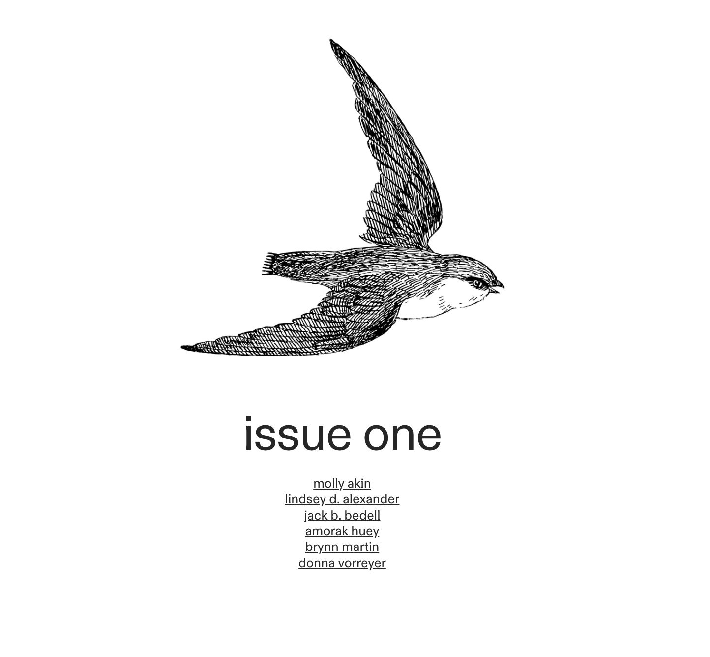 ![]() accumulate/quiet is a literary organization I’m founding as an umbrella for the editorial and writer resource projects I’m working on. Our name comes from the understanding that within every creative project and artistic life there are moments to accumulate, research, write, and gather, as well as moments to quiet, let a project sit, rest, and let yourself recharge. We aim to create space and support for both accumulation and quiet for writers, editors, and artists through a variety of projects, including the publication of new literary work. | ![]() s w i f t s: a literary magazine is the first project I’m launching under the accumulate/quiet umbrella. Like its namesake, the journal prioritizes pieces that are adept in multiple ways at the same time: speed and strength, quick movements and longevity of flight, drag and thrust. For each issue, we aim to choose a select few pieces worth reading in their entirety. We published the first issue just recently, and couldn’t be prouder to highlight work from Molly Akin, Lindsey D. Alexander, Jack B. Bedell, Amorak Huey, Brynn Martin, & Donna Vorreyer. |