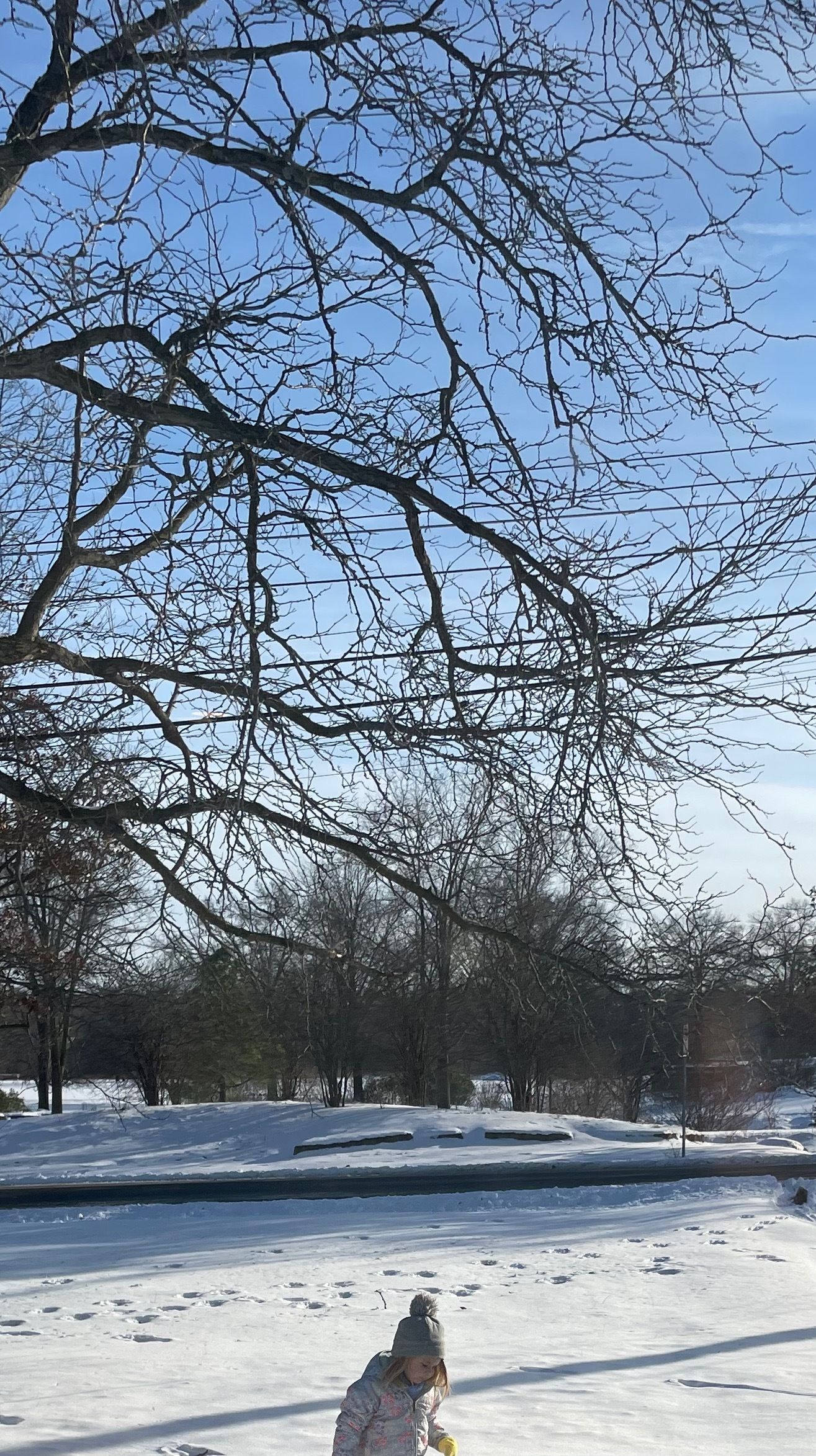 Look through your phone for an image or video that exhibits partiality. You might think about what’s partial as a lack of fullness or completeness, but don’t forget it can also be its own good, too: to be partial can also mean not finished, open, not closed. If you’re looking for inspiration, look above at the eclipse seen through the leaves’ shadows, Susan Nguyen’s incredible poem, or the picture I caught of my daughter exploring her first major snow of the year. Once you have your own image or video, write a poem that uses it.