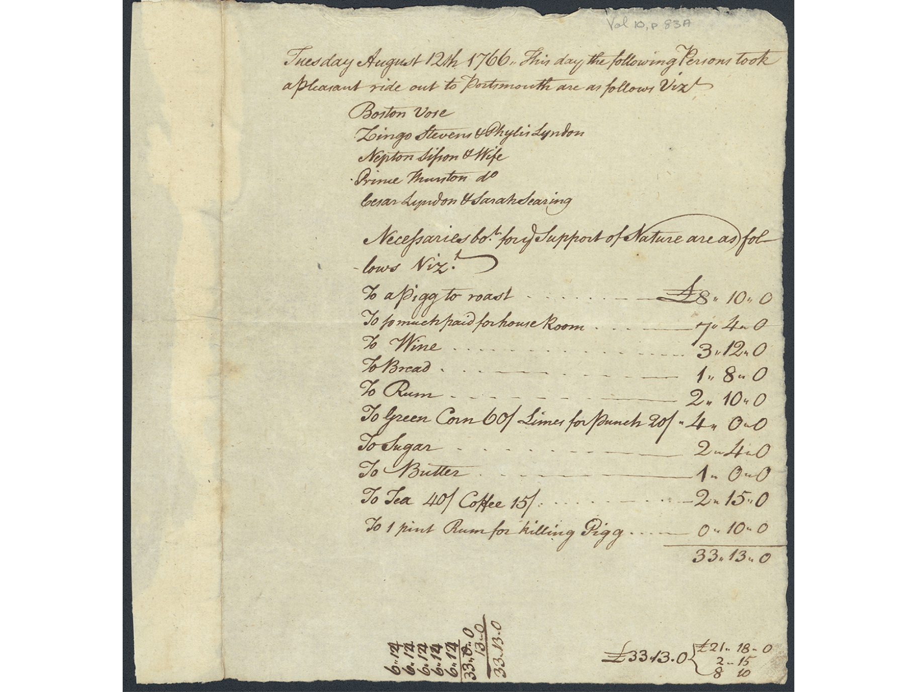 An image Dr. Bynum shared of a receipt for a cookout trip organized by Phillis Wheatley’s friends.